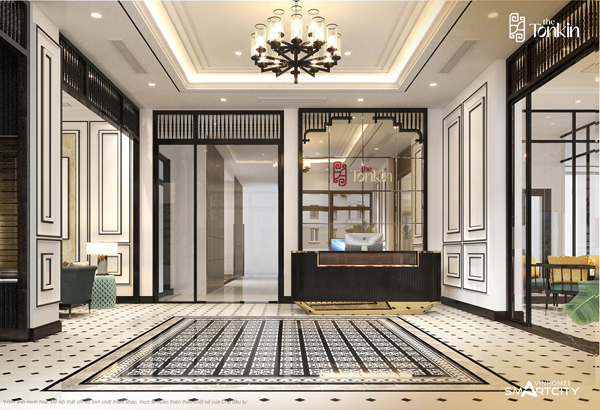 Sảnh lễ tân của dự án được thiết kế và bài trí tỉ mỉ theo phong cách Indochine tựa như một sảnh chờ sang trọng của những khu khách sạn và resort 5 sao
